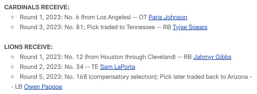 While there hasn’t been a deal like this one in the last two drafts, the 2023 NFL Draft had one that compares.