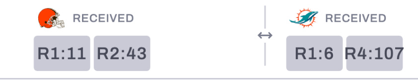 So, I think ultimately the Browns would have to send back pick 70 for this to happen and the Dolphins would tack on another in the 120-ish range but for the sake of moving values and unpredictable desperation we took what was offered.