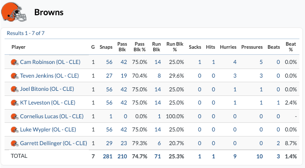 The offensive line was makeshift coming into the game and it showed. The pass protection from the tackles was really rough in this one, as we have grown accustomed to, but it just destroys what an offense can do. The interior seemed fine on first watch but we will study more.