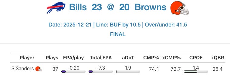 However, the Browns did very little downfield and his 1.9 aDOT is among the lowest in the NFL for a single game all year.