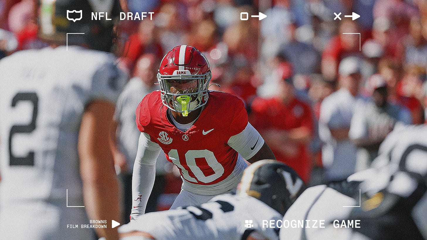 At pick 149, Cleveland adds a high-effort, coverage-capable linebacker with the athleticism to have a shot to grow into a role and make that immediate impact in the special teams phases from day one — and an Alabama teammate for their brand new center.