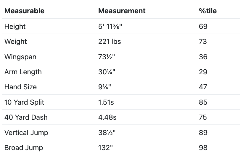 Judkins started his career at Ole Miss where he thrived right away with 1,567 yards and 16 touchdowns in his freshman season and followed it up with 1,158 yards and 15 touchdowns in 2023. He then transferred to Ohio State where he split carries with Henderson but still produced 1,060 yards and another 14 touchdowns.