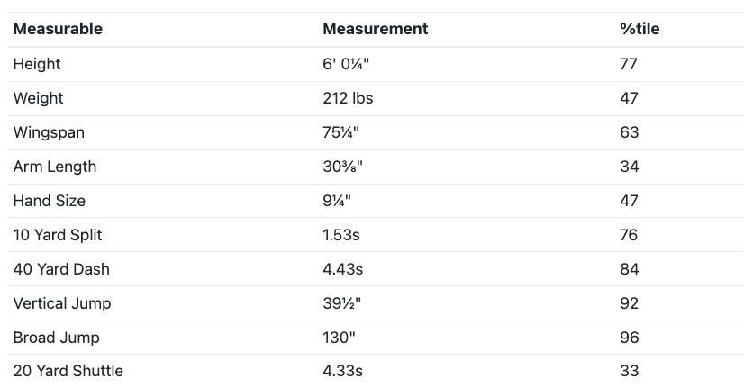 Notable Statistics: Positional versatile throughout his career with 29 percent of snaps in the box, 42 percent at free safety, and 26 percent in the slot (remaining three percent at other various spots). Led FBS in run-defense grade in 2024 (93.7).
