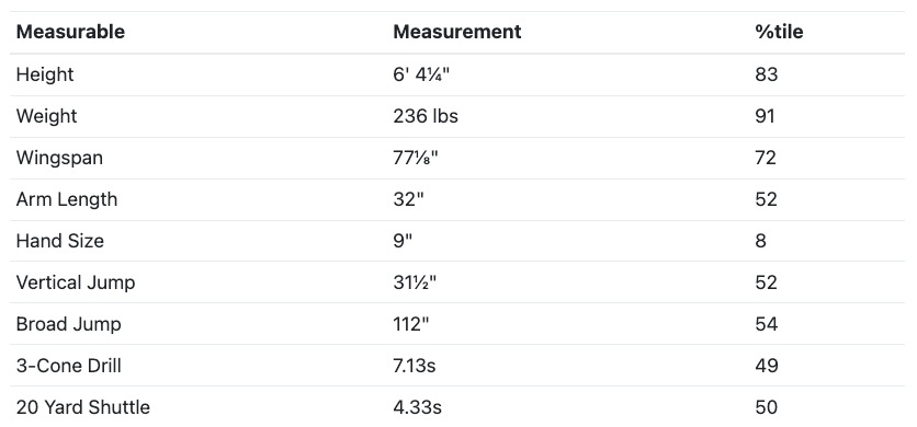 Scouting Report Excerpt: Will Howard has plenty of experience, and that will only help him at the next level. He’s shown that he can operate in a favorable offense that allows him to get the ball out of his hands quickly and to his playmakers. He also showed some moments of still being able to get the ball out of his hands in tight pockets and did a great job of avoiding sacks. However, since his arm talent won’t ever be toward the top echelon of quarterbacks, he’ll need to really up his processing ability. Every predetermined throw won’t be open in the NFL, and he’ll need to show that he can work to the backside of his progression smoothly and not force throws into dangerous areas. Howard might not ever become an elite starting quarterback in the NFL, but he can carve out a nice role. - Nick Akridge, PFF