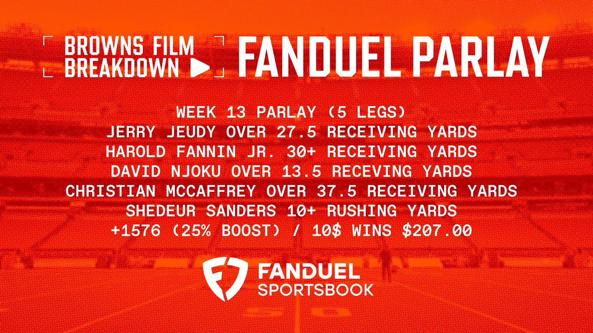 Another week, another parlay on FanDuel that gets us some nice odds where you can lock in another 25% profit boost and get some better odds. Despite the weather, we turn to some low number receiving yard props as the Browns tight end numbers are low and Shedeur Sanders should get some opportunity to throw it around. Let’s take advantage of it. It’s also tough to pass on some CMC receiving yard props — especially when it is below 40 yards.