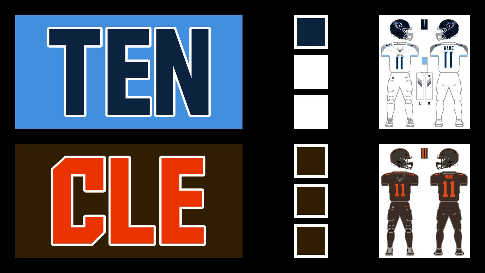 The Browns go back to their “Alpha Dawg” uniform which has been successful in both times wearing the look — wins over the Packers and Dolphins. The Titans have basically only worn this look on the road while mixing in some baby blue for home games. Not a very creative effort by the Titans with uniforms this year and it will be a bit of a bland matchup in this one.