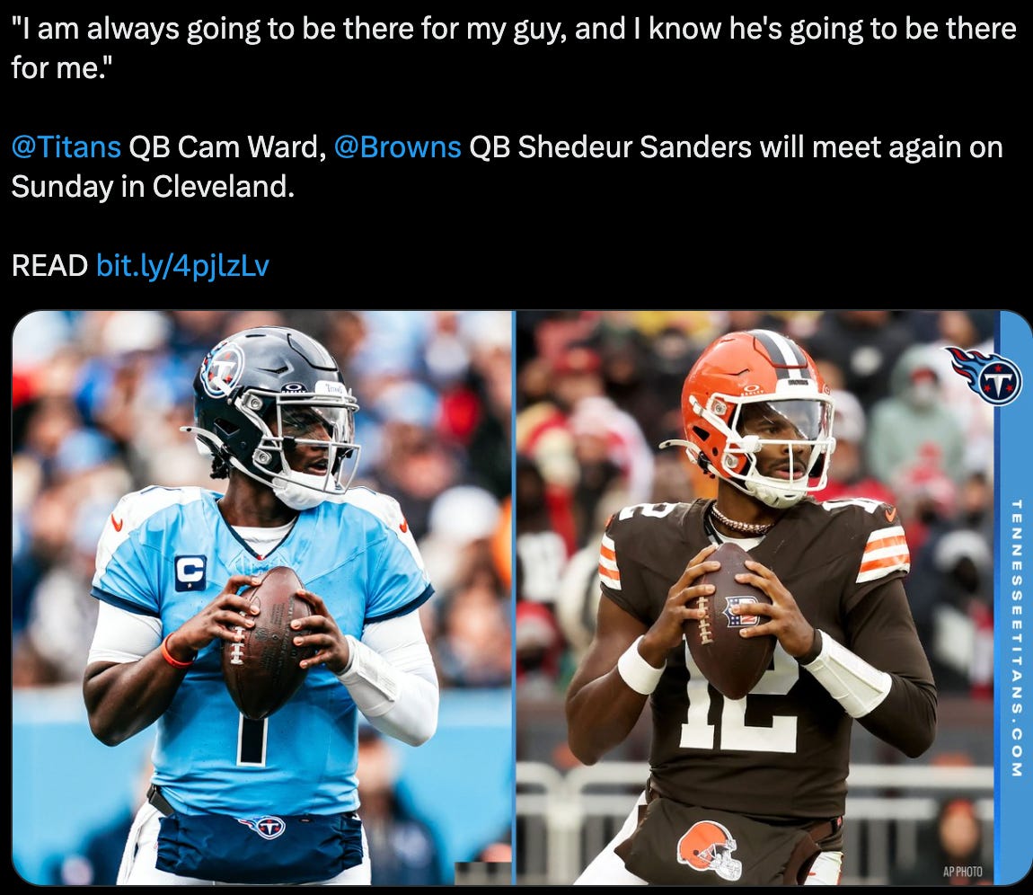 We do get to see Cam Ward, who the Browns missed out on by one selection, face his friend Shedeur Sanders. The two trained together throughout the draft process and formed a deep friendship. Ward certainly has a much tougher defense to face in the battle but the Titans will make life tough on Sanders as well.