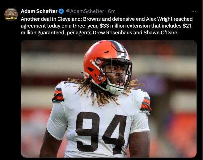 Well, the Browns finally found their midseason extension candidate and locked in the deal. Alex Wright is the choice for the annual move as the Browns fourth-year EDGE has asserted dominance over the role opposite Myles Garrett and is thriving in both phases.