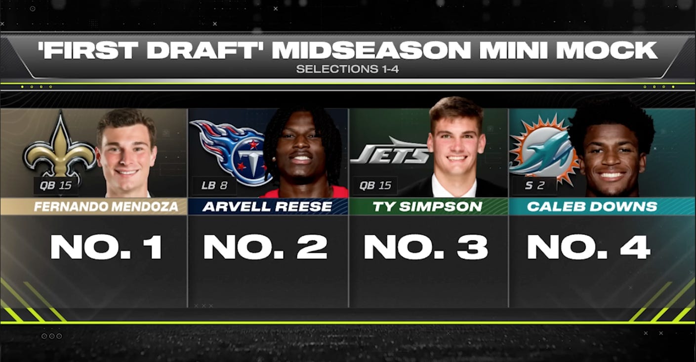 In the latest ESPN Mock Draft posted yesterday, the Browns are selecting 6th overall due to their two wins (2-6 overall) and that leaves them behind quarterback hungry teams in the Jets and the Saints. In this version you had the Saints going with Fernando Mendoza first overall and then the Jets selecting Ty Simpson third overall. That means we return to today’s topic as the Browns select the third quarterback in the class and go with Dante Moore from Oregon. Here are the notes from those on the panel.