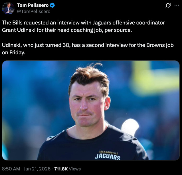 As I said, I think the Bills go in a different direction here, but the interview request is especially noteworthy for Udinski’s standing in the league and for how the Browns fanbase will perceive him. If he were hired without interest from any other franchise, some would grow concerned, so that narrative is now off the table. The Bills are firmly in “win now” mode, and they would not waste their time. That means the Browns should not waste their own time either if they are serious about offering this job to Udinski. Big weekend coming up.