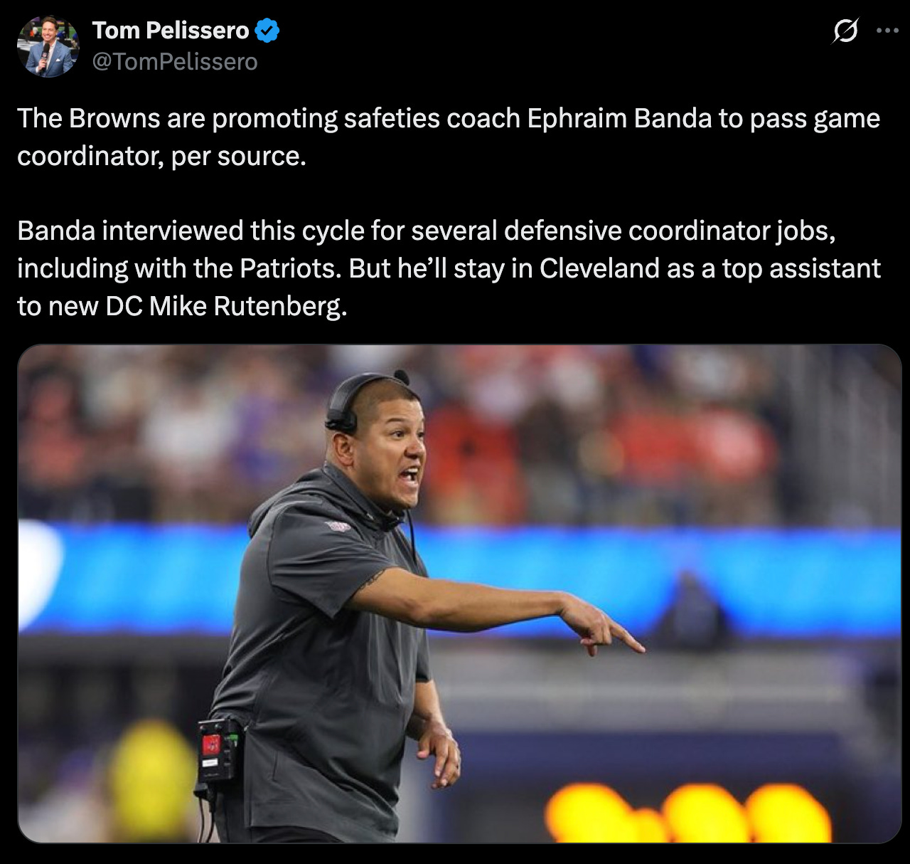 When the update on Lynch landed, it meant he was also taking over the safeties, which put Banda’s current role in jeopardy. While Banda leaving was a possibility, I had a feeling it would come with a title promotion, and being named pass game coordinator made sense. It’s one of the pathways many coaches take before earning their own defensive coordinator role. That news came out today.