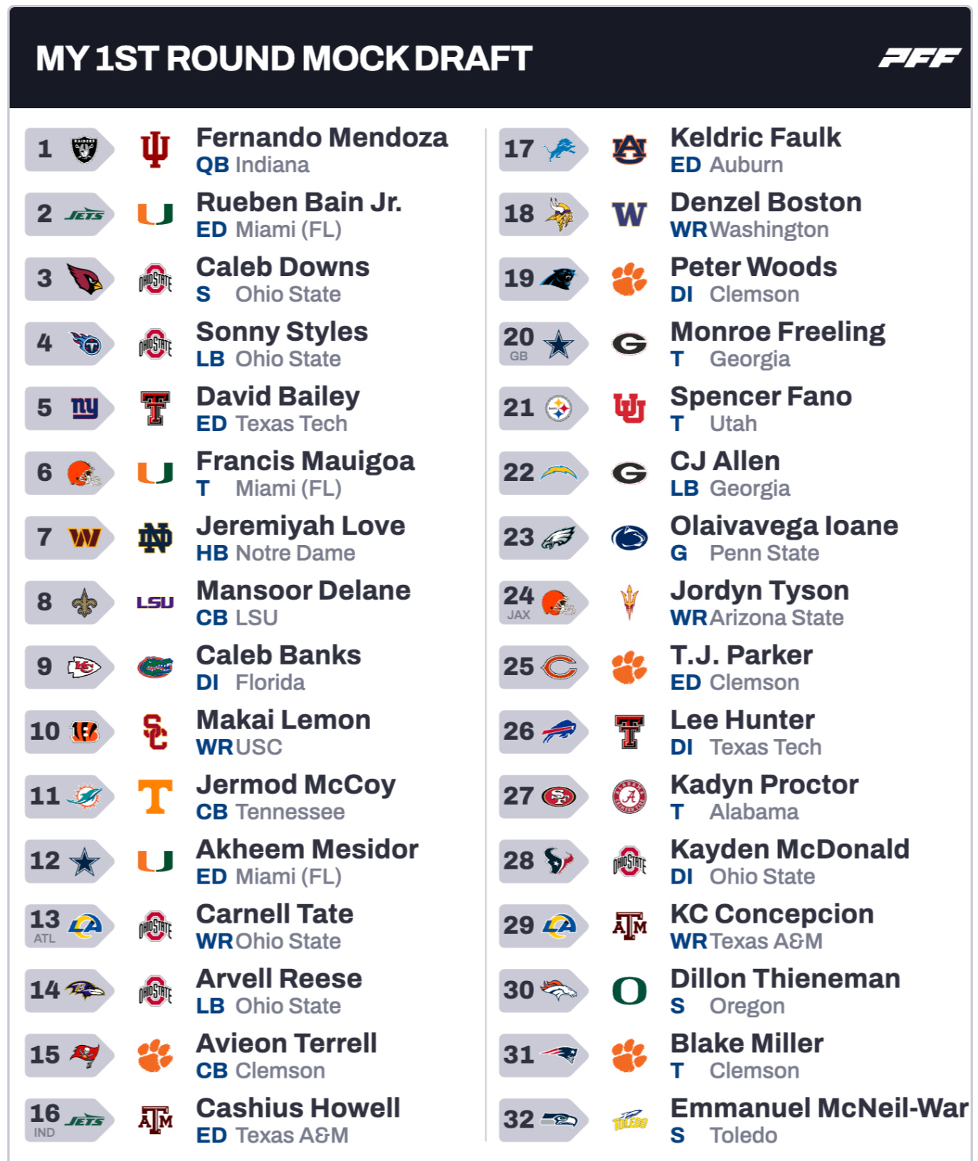 With some of the updated testing I got the urge to get into another mock draft. These are low maintenance types before my first true in-depth version next week. You really have to love how this first round played out before we get even more big pieces at wide receiver and the offensive line.