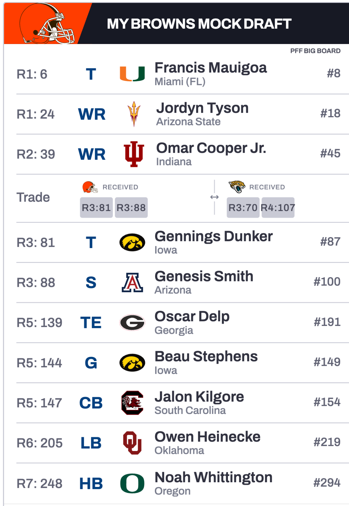 If the first five picks play out like this, the Browns will certainly have some really chances to trade down for teams seeking out offense help but it’ll be tough to pass up the names here.